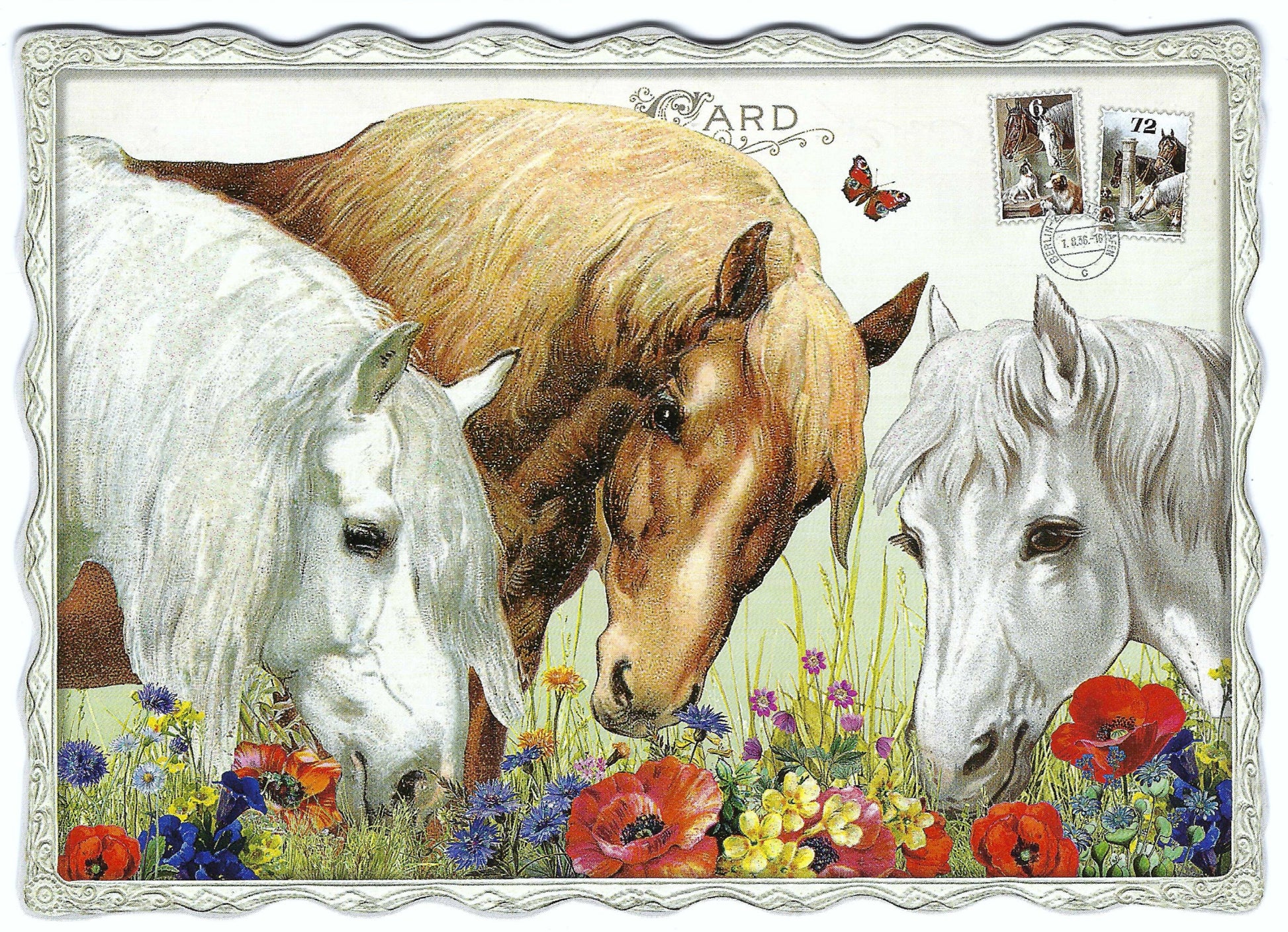 Auguri by Barbara Behr - Horses - Flowers - Postcard