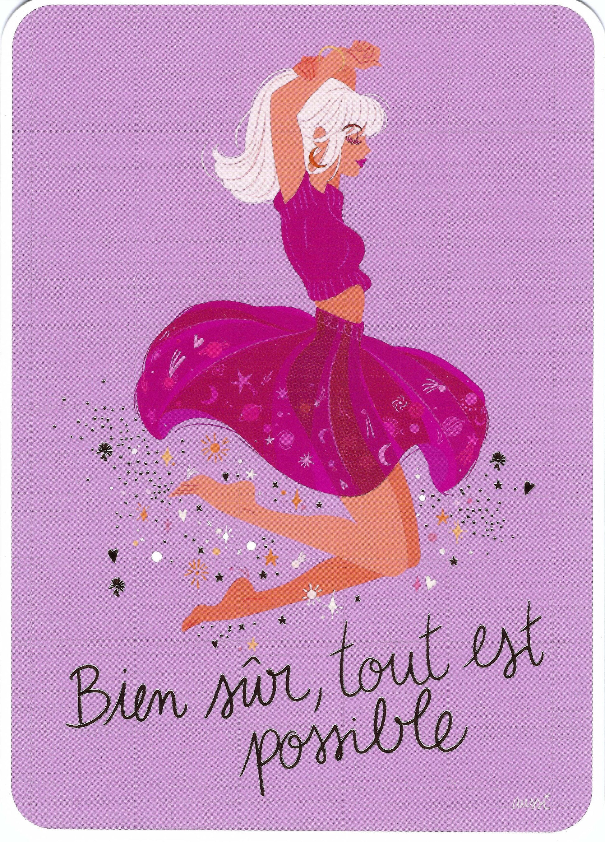 CODE CINQ - Audrey Bussi -Spacegirl - with French Text - translation - Of Course Anything is Possible - Postcard with foil details