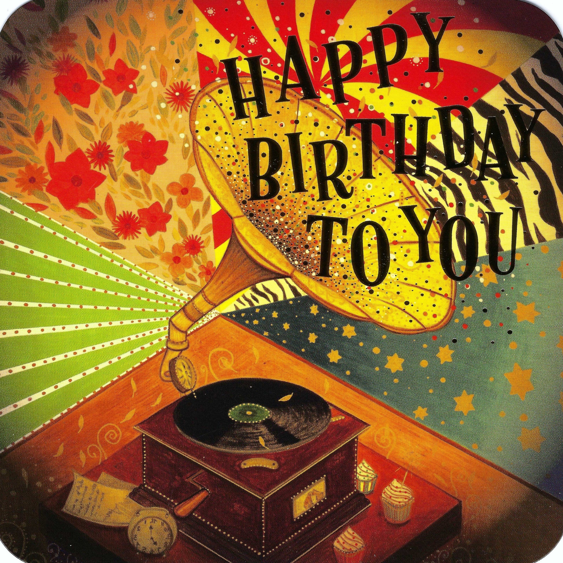 Correspondances - Jehanne Weyman - Happy Birthday - Gramophone - Postcard with gold foil details.