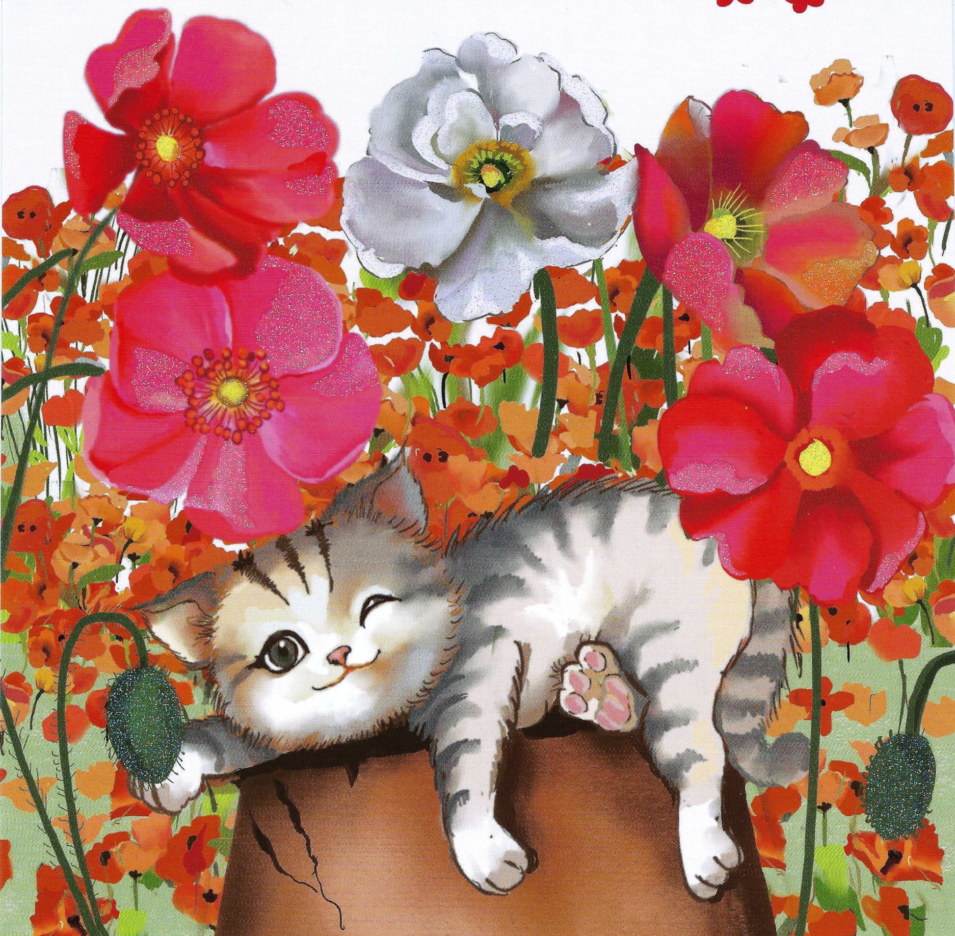 Sabina Comizzi - Cat - Kitten - Flowers - Postcard