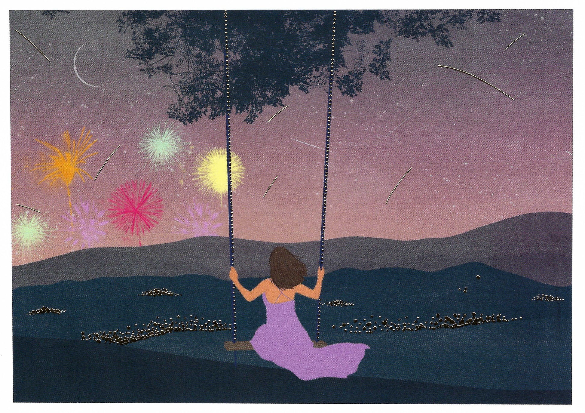 Editor - Art of Emotion - Swing - Night Sky - Fireworks - Postcard with foil details