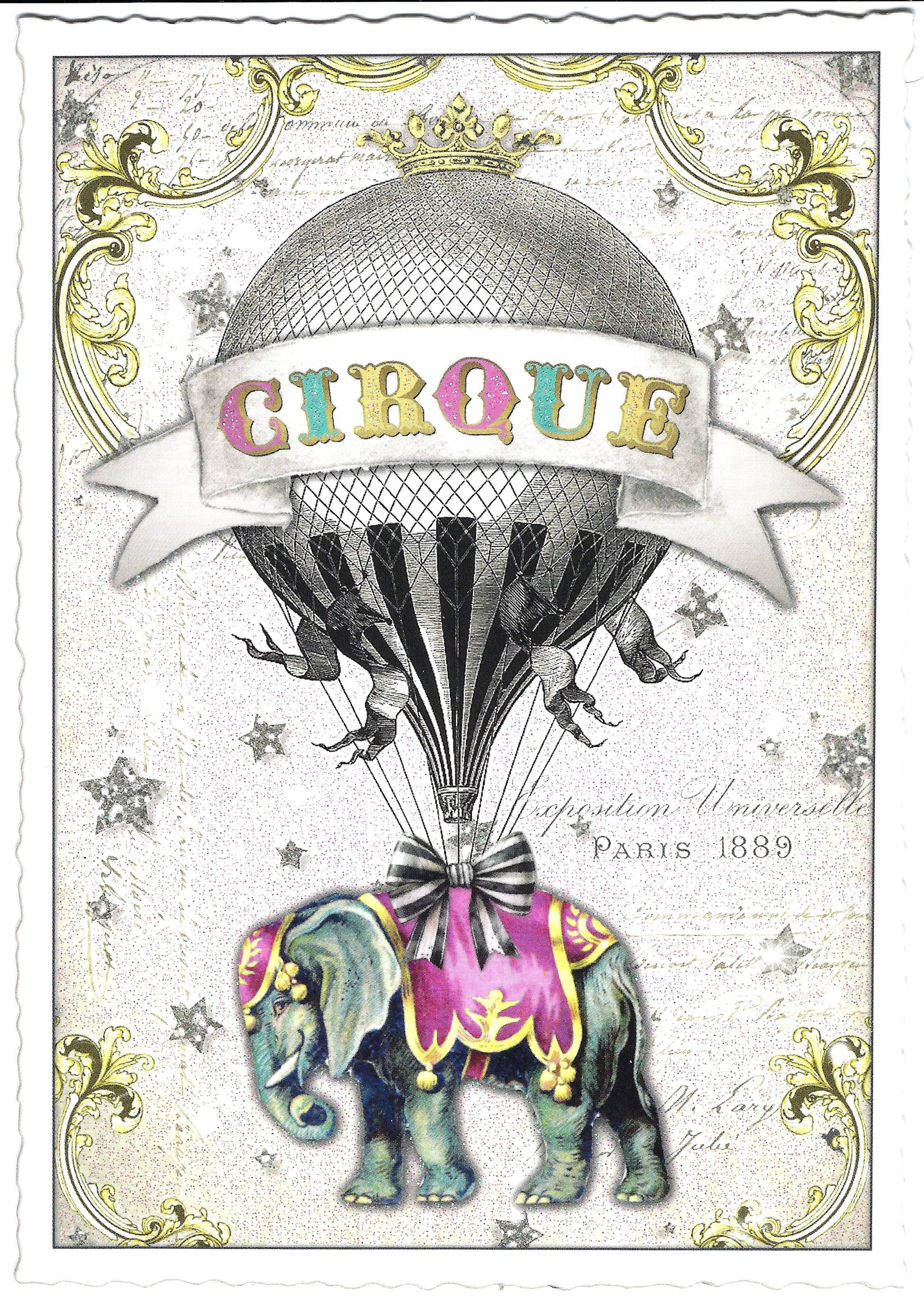 1 Valerie Dumas Postcard – Woman on Elephant (gold foil details)