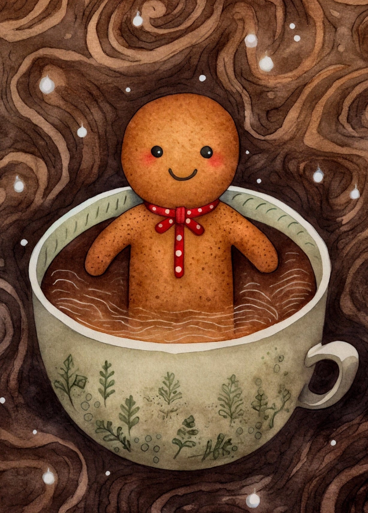 Fripperies - Gingerbread - Hot Cocoa - Gingerbread Man - Christmastime - Postcard