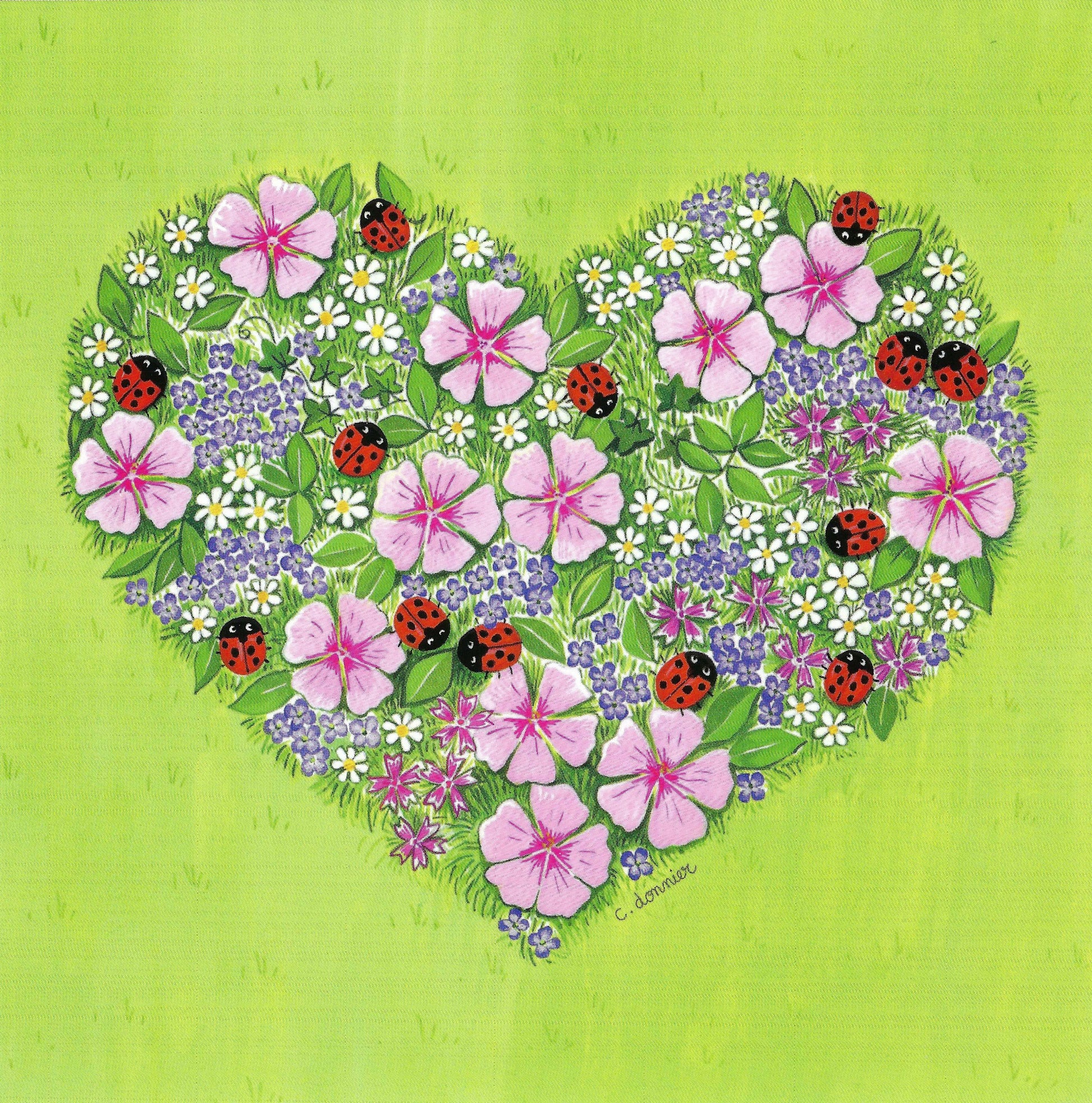 Heart Postcard with flowers and Lady Bugs by Titi Pinson