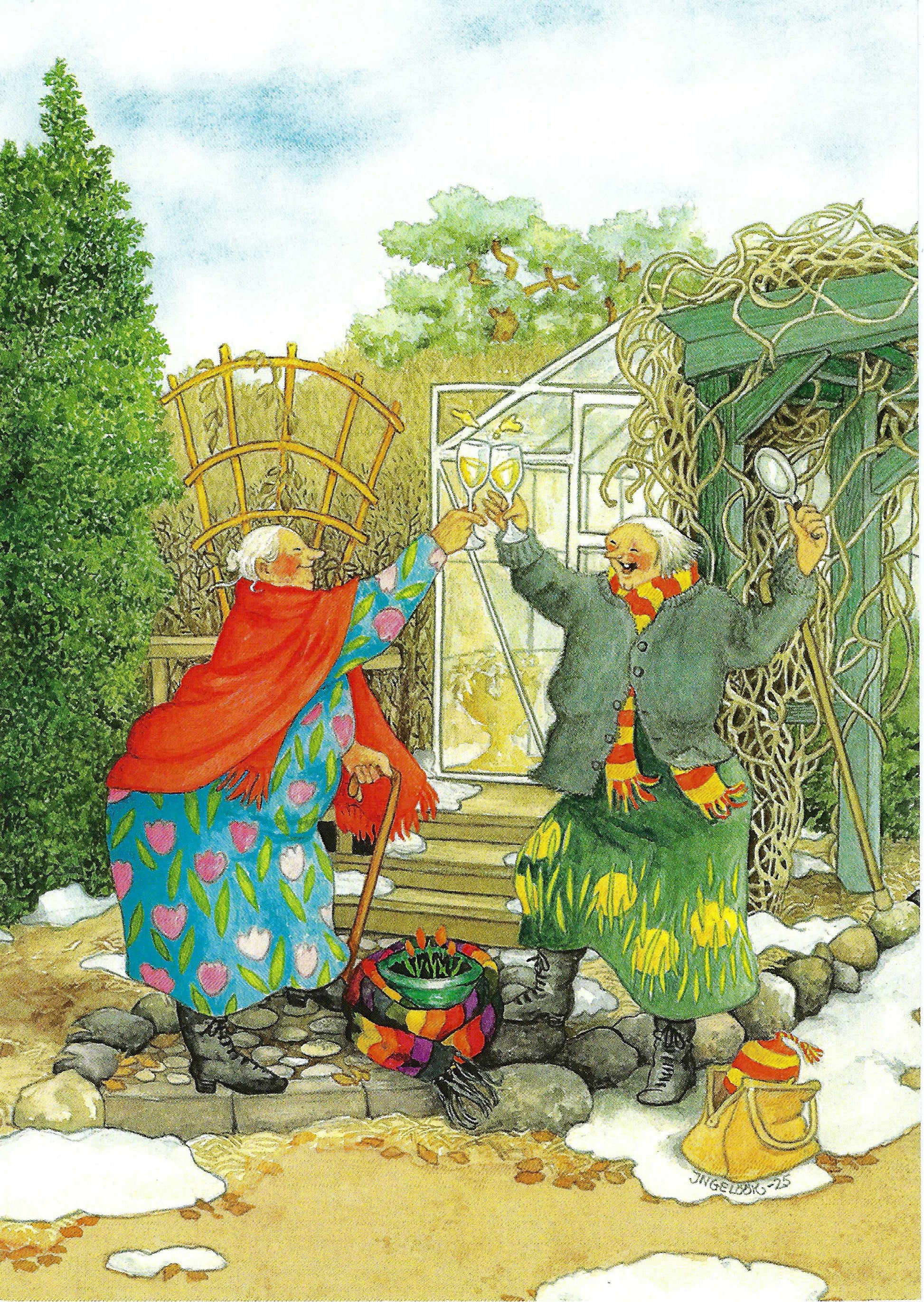 Inge Löök - Aunties - Friends - Old Ladies - A Toast to the First Flowers in the Garden - IN84 - Postcard