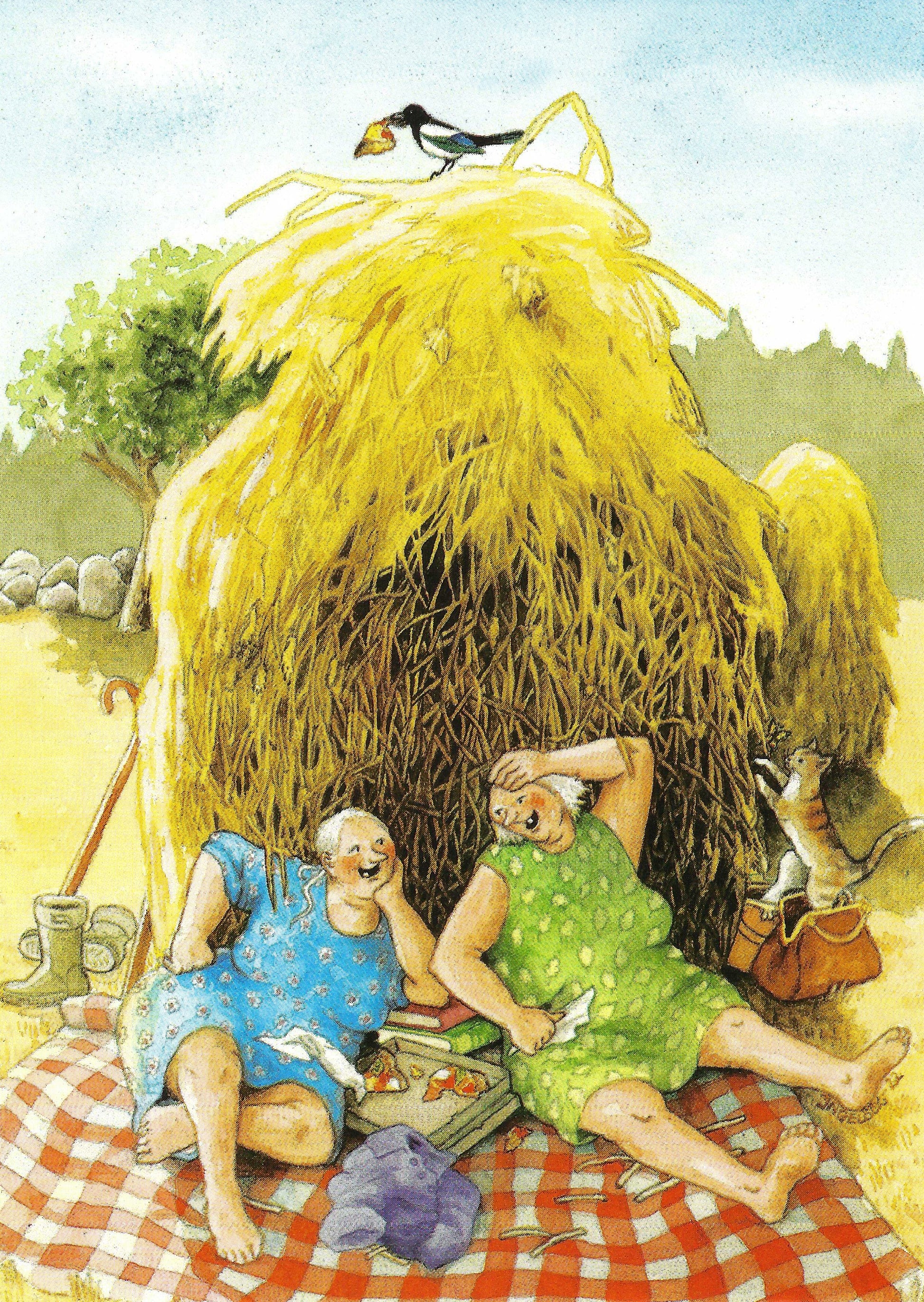 Inge Löök - Aunties - Friends - Old Ladies - Women - Hay - Picnic - Postcard