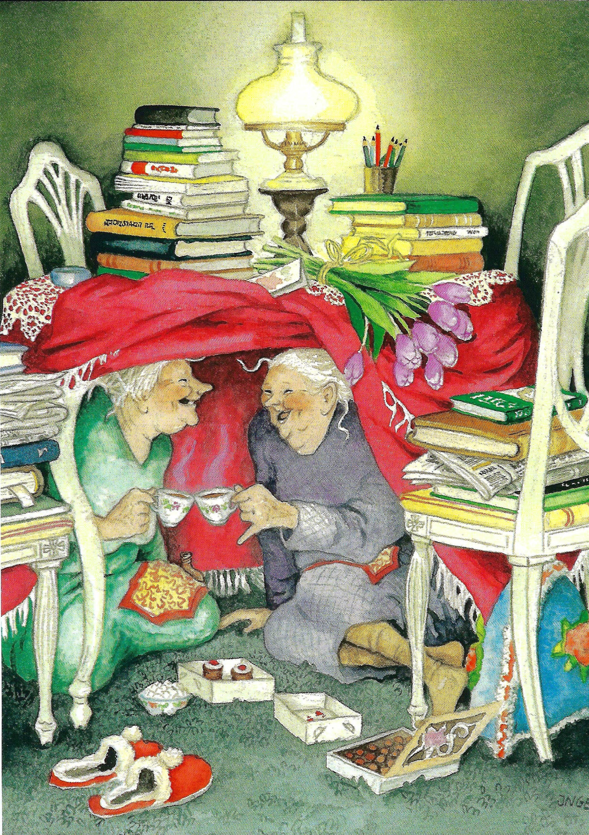 Inge Löök - Women Drinking Tea under the Table - Books - Friends - Aunties - Old Ladies - Postcard