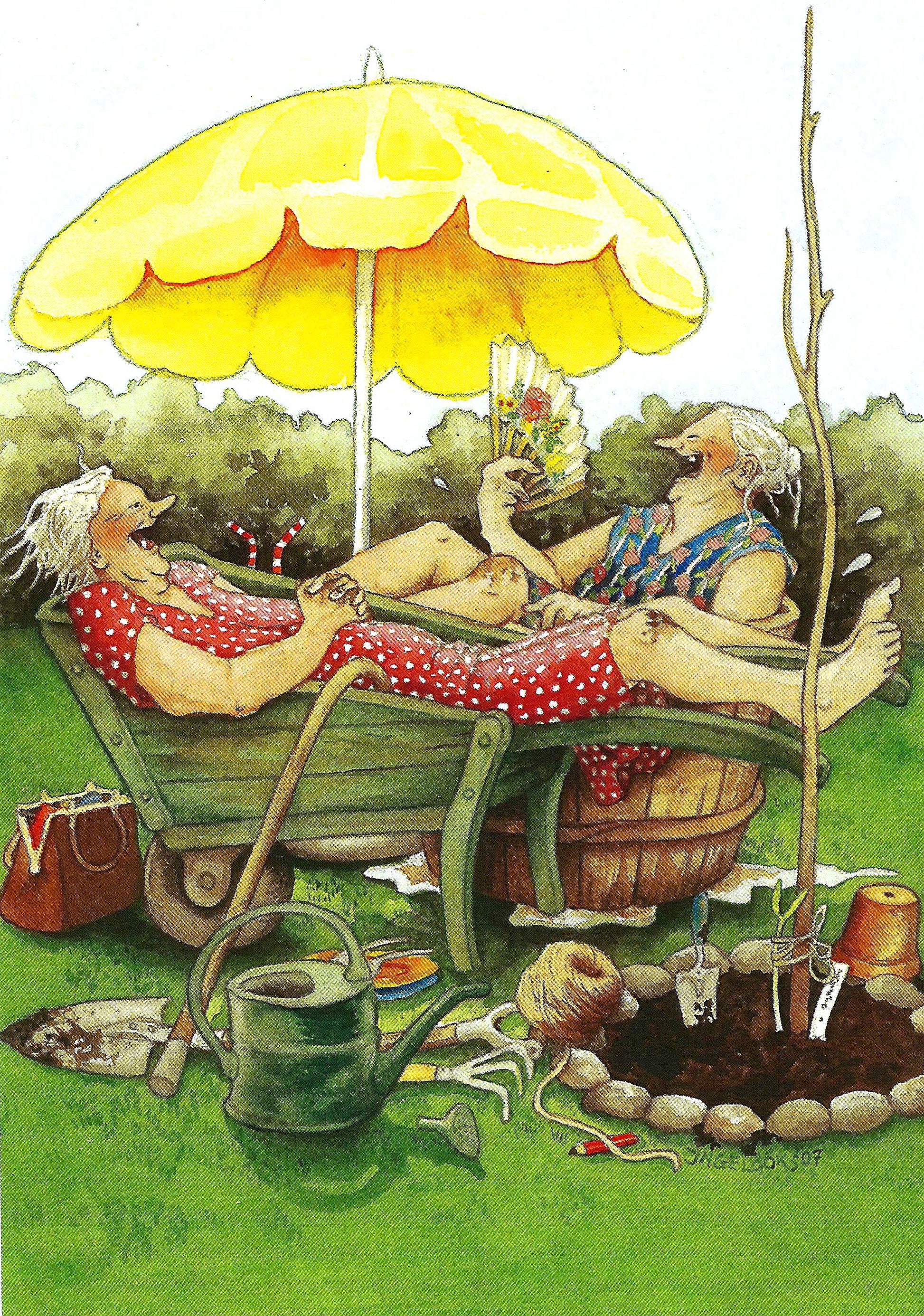 Inge Löök - Women in Wheelbarrow and Tub - Friends - Aunties - Old Ladies - IN20
