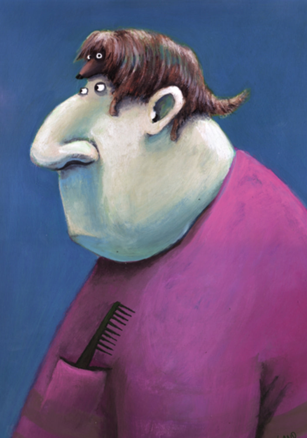 Inkognito - Dorthe Landschulz - Haridresser - Man - Dog - Toupee - Postcard