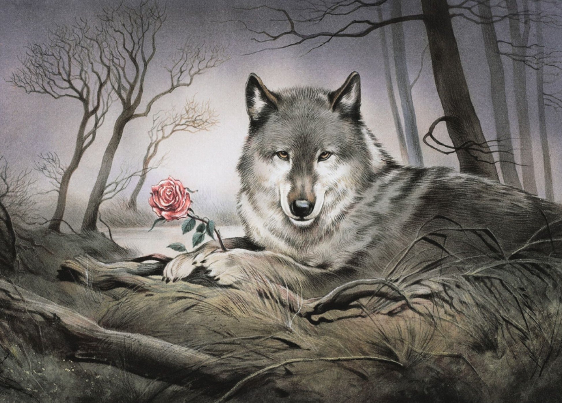 Inkognito - Reinhard Michl - Wolf and Rose - Postcard