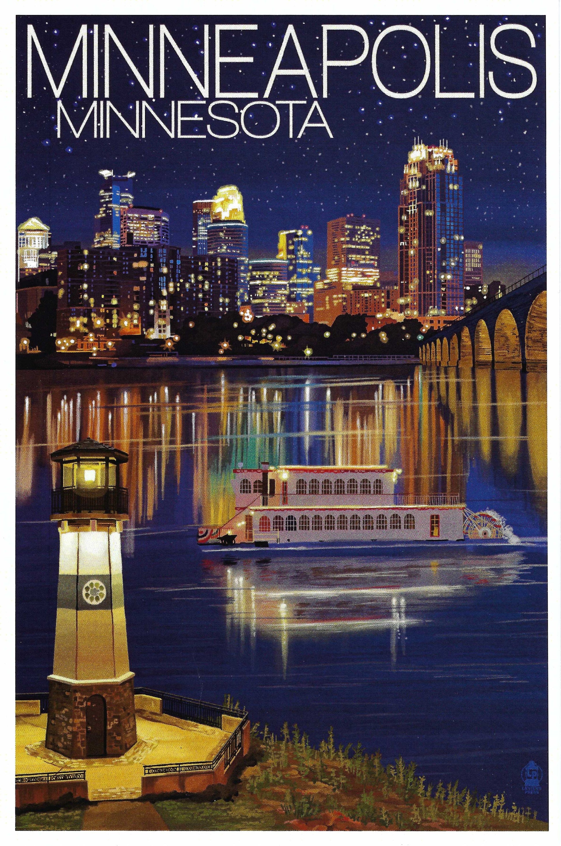 Lantern Press - Minneapolis - Minnesota - Skyline at Night - Postcard