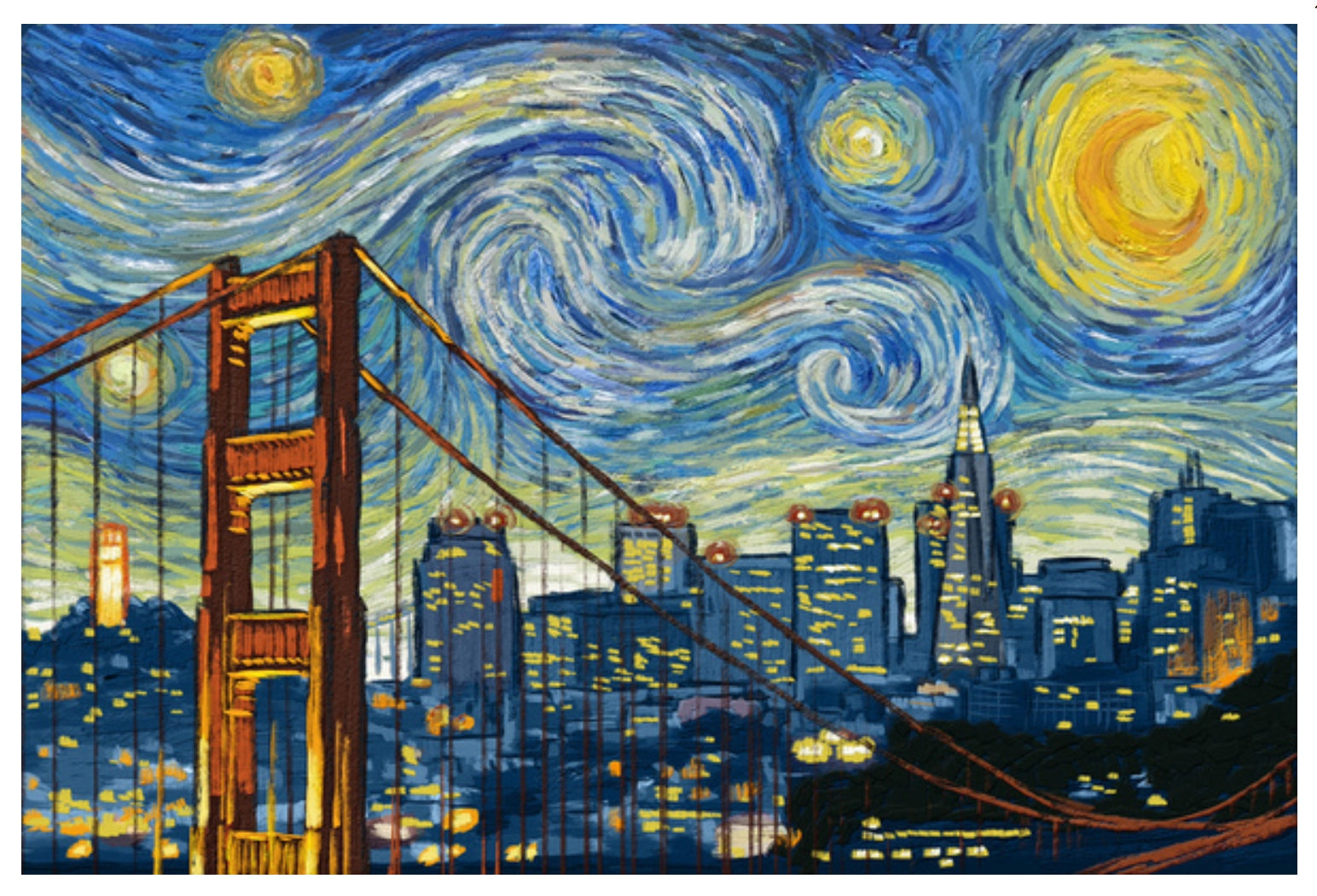 Lantern Press - San Francisco, California - Golden Gate Bridge - Starry Night City Series - Postcard