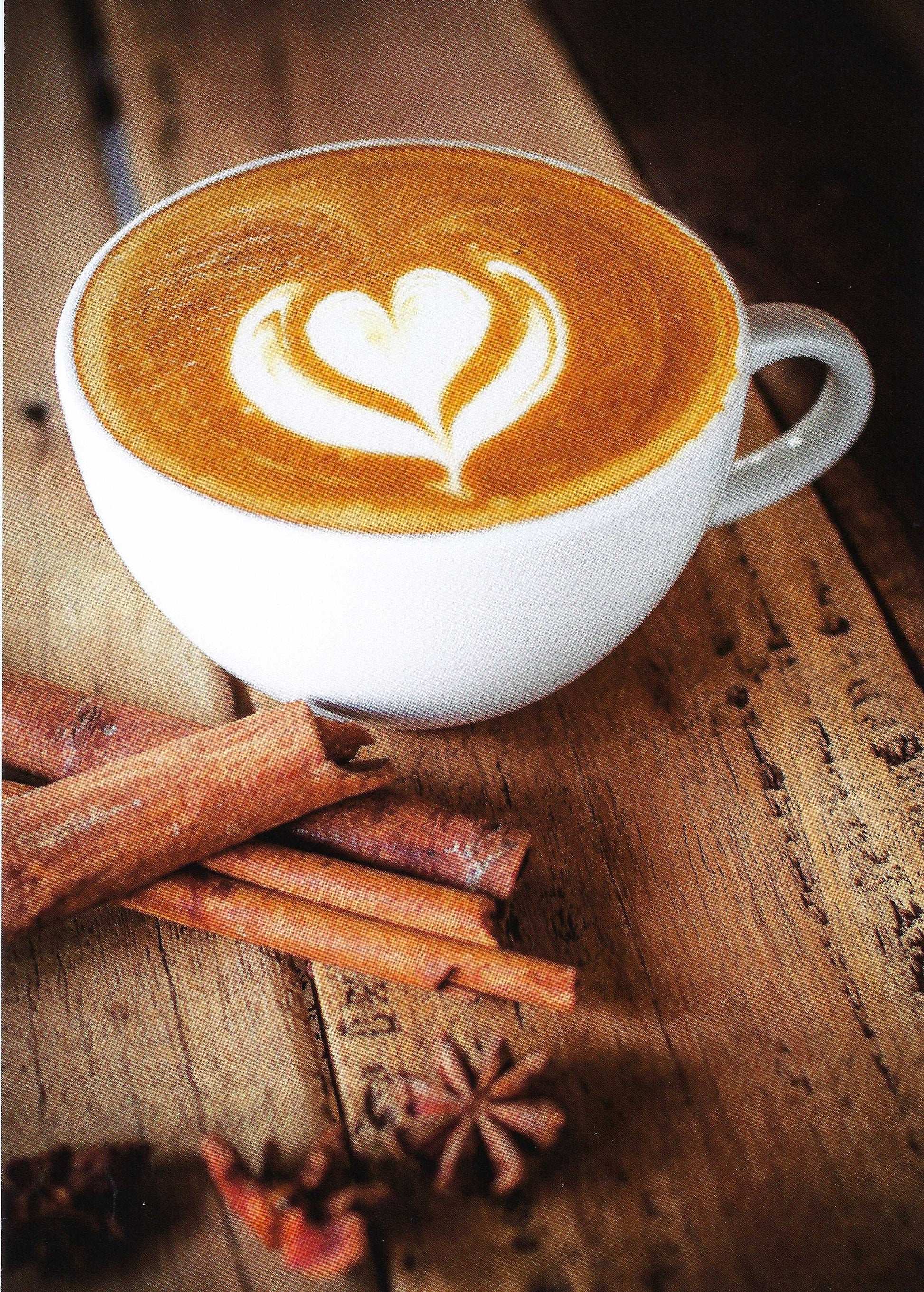 Coffee Postcard - I Love Coffee - Cappuccino with Heart and Spices by Taurus Kunstkarten