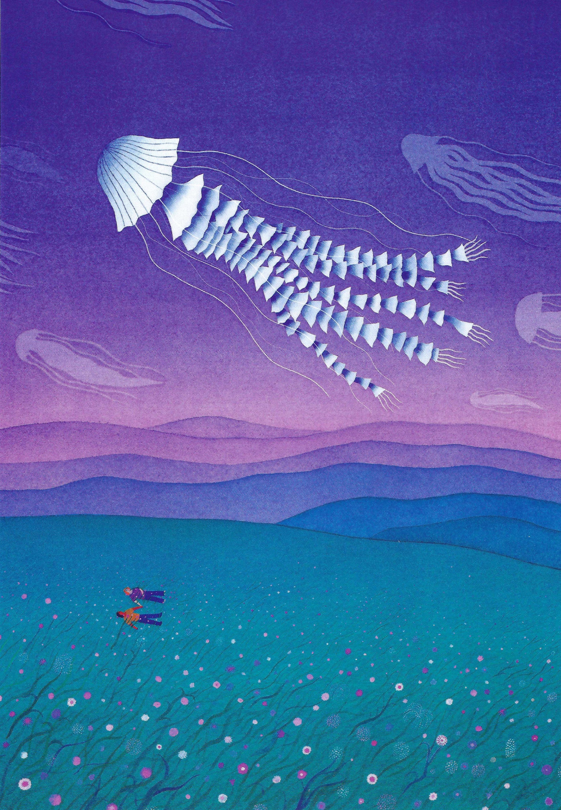 1 Jean Mallard - Jellyfish in the Sky - Postcard with pretty varnish details