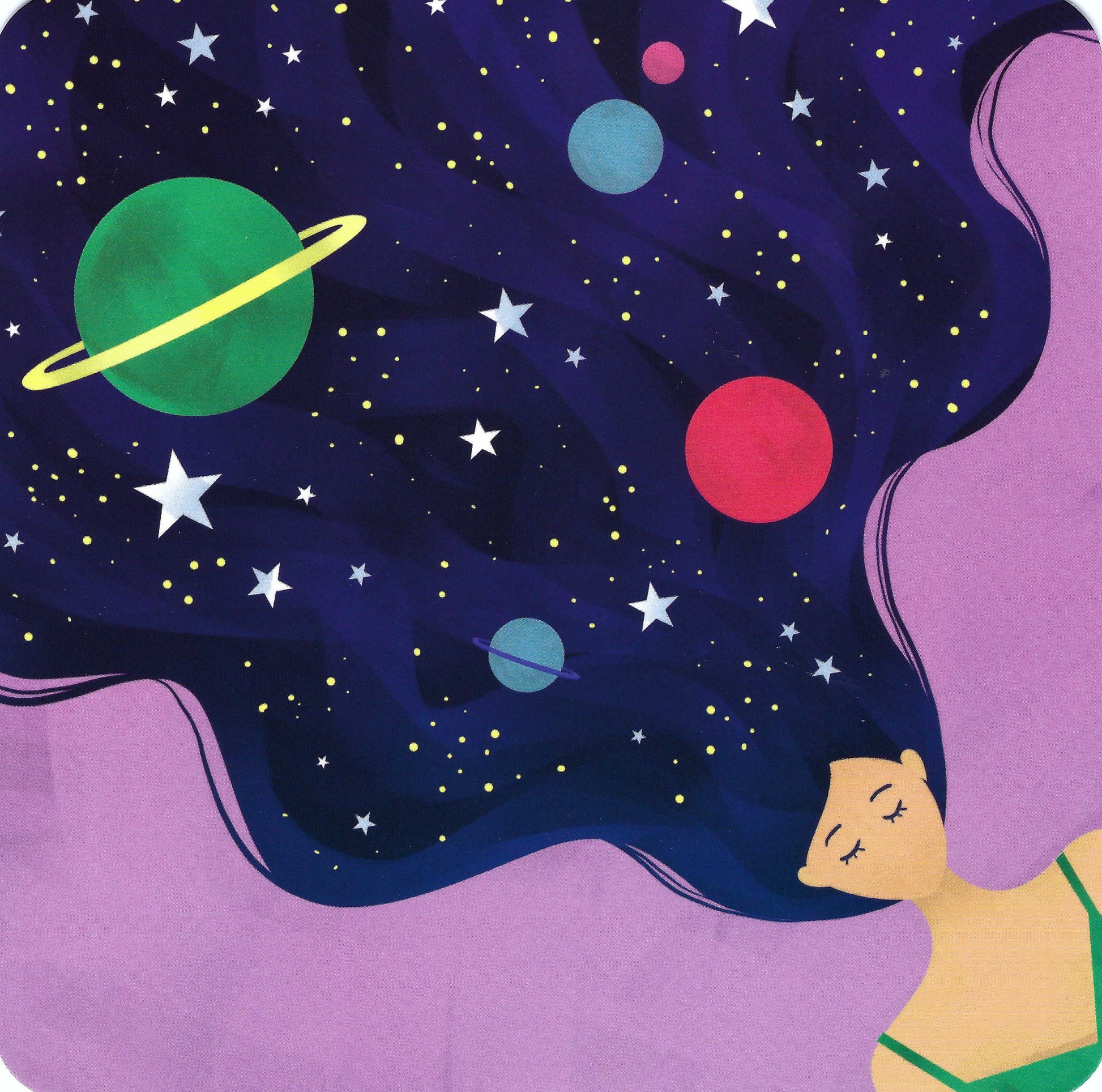 1 Group Editor - Dans Les Nuages - Girl - Space - Planets - Postcard